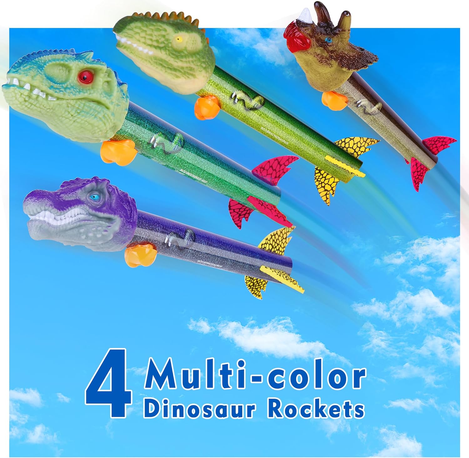 Easy to Assemble and Storage: Our dino rocket toy is easy to assemble, even a little boy only needs a few minutes to build it perfectly. The detachable launcher stand can be stored easily in small spaces. A great choice for carry and travel