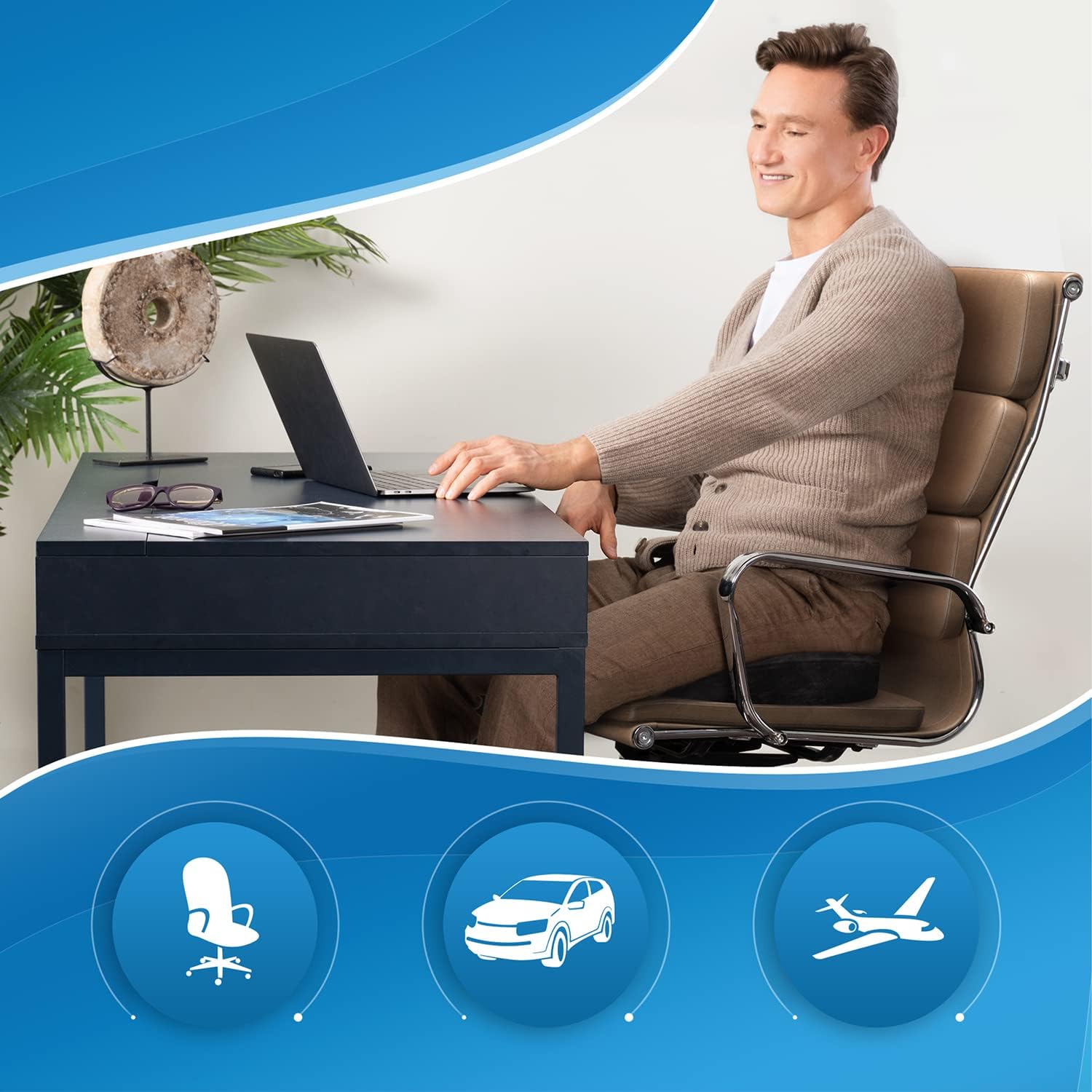 Versatile & Durable: Ideal for office, home, and travel, it fits various seats like office chairs, car seats, and airplane seats and is on the HSA and FSA eligible items only list. Our sciatica pain relief pillow keeps its shape over time