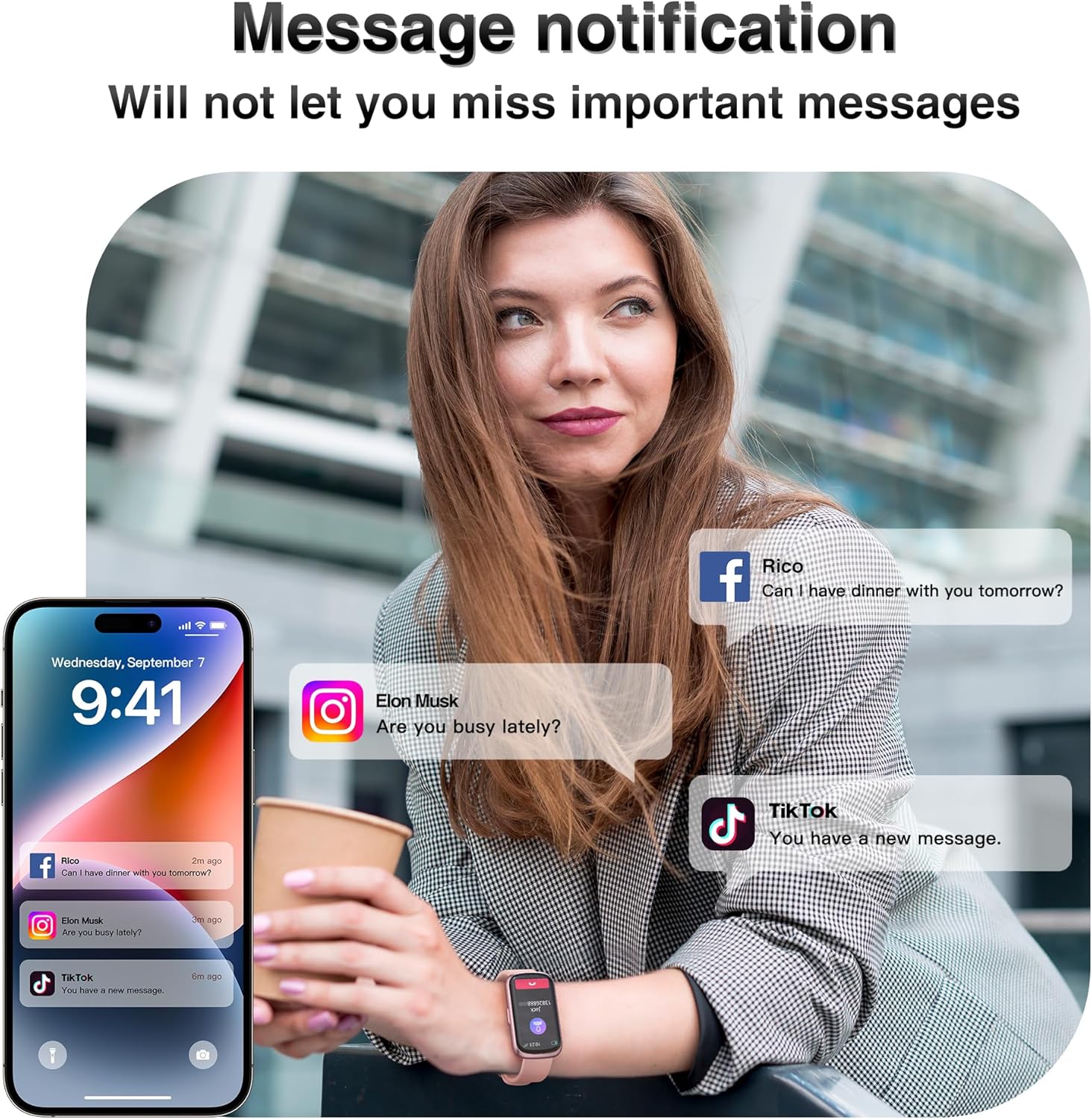 【24/7 Health Monitoring & Sleep Tracker】This activity & fitness trackers can measure your heart rate, blood oxygen and blood pressure in real time for 24 hours, and the sleep tracker function can continuously record your REM sleep, light sleep, and deep sleep status, and provide sleep analysis and recommendation reports. It also has functions such as drinking water reminders, sedentary reminders, and female menstrual management, which can help you adjust your lifestyle.
